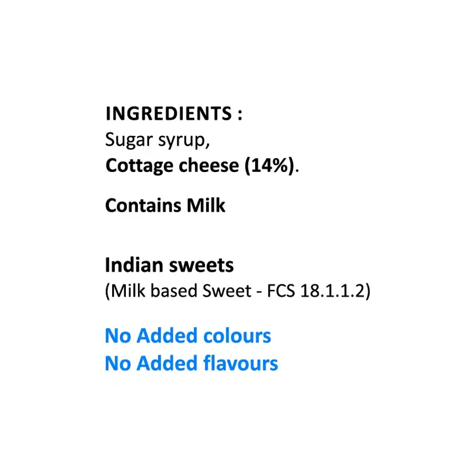 Sugar Syrup (Sugar, Water), Chhana and Permitted Class Preservative (E222), Contains Added Flavour (nature Identical Flavouring Substances-Rose Water)