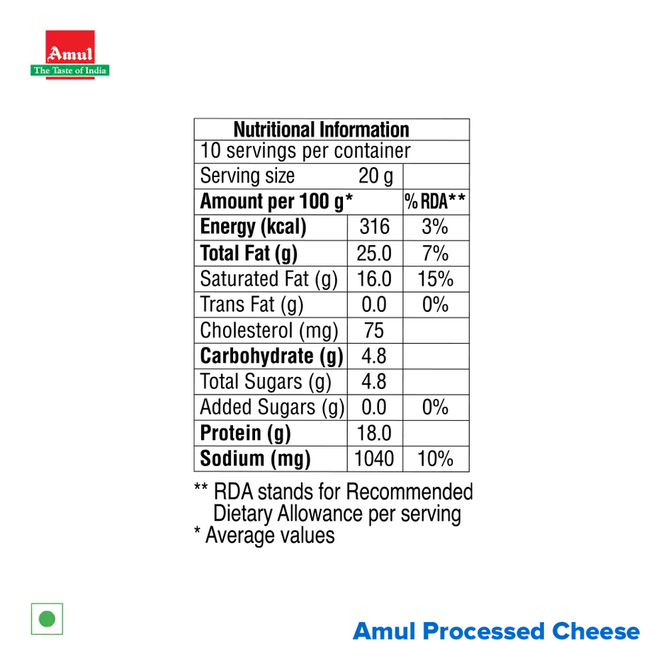 Cheese, Milk Solids, Emulsifying Salts (452, 339, 331), Iodized Salt, Preservatives (200, 234)