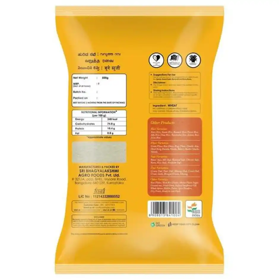 Made from premium wheat, Ideal for upma and halwa, Roasted for enhanced flavor, High in protein