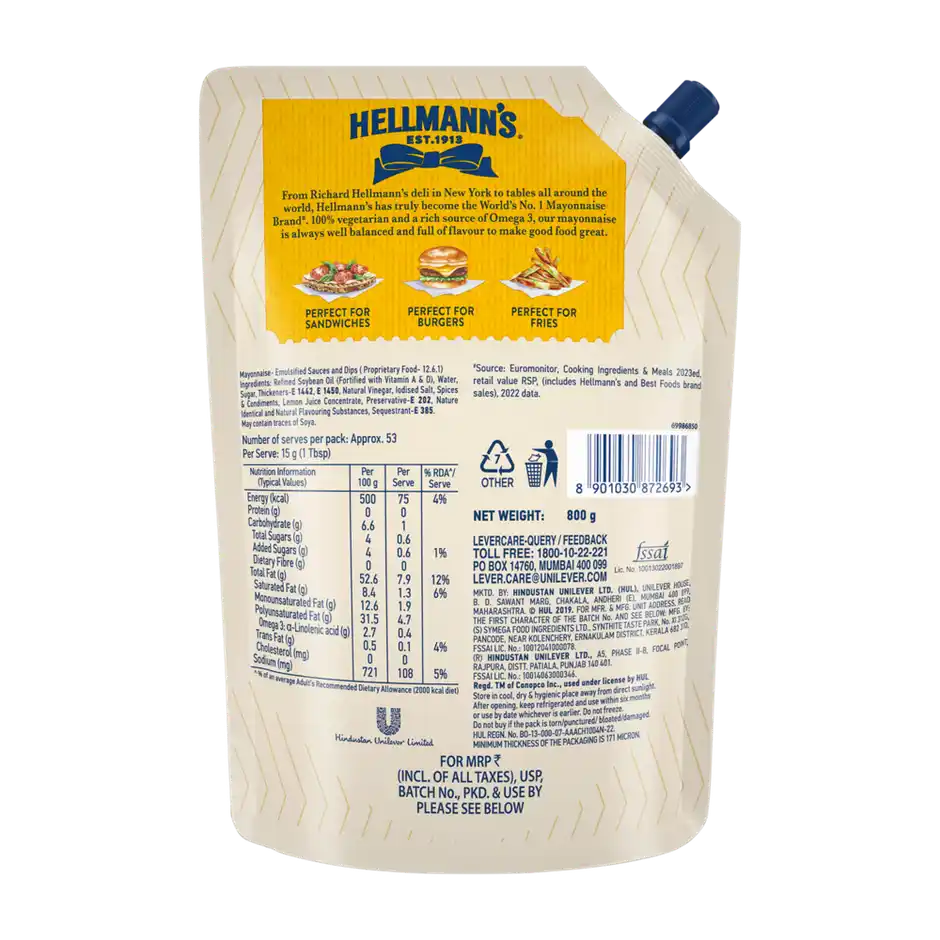 Refined Soybean Oil (Fortified with Vitamin A & D), Water, Sugar, Thickeners-1442, 1450, Natural Vinegar, Iodised Salt, Spices & Condiments, Lemon Juice Concentrate, Preservative-202, Sequestrant-385