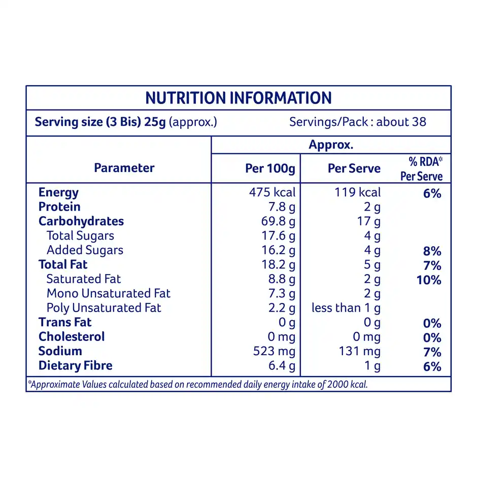 High in fibre, goodness of wholewheat, trans fat free, ideal for family sharing