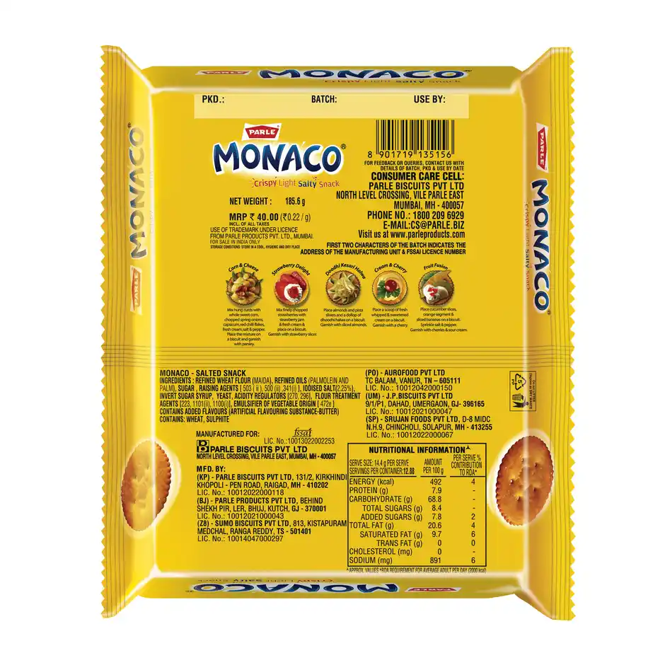 Parle Monaco Classic Salty Biscuits (185.6 g )