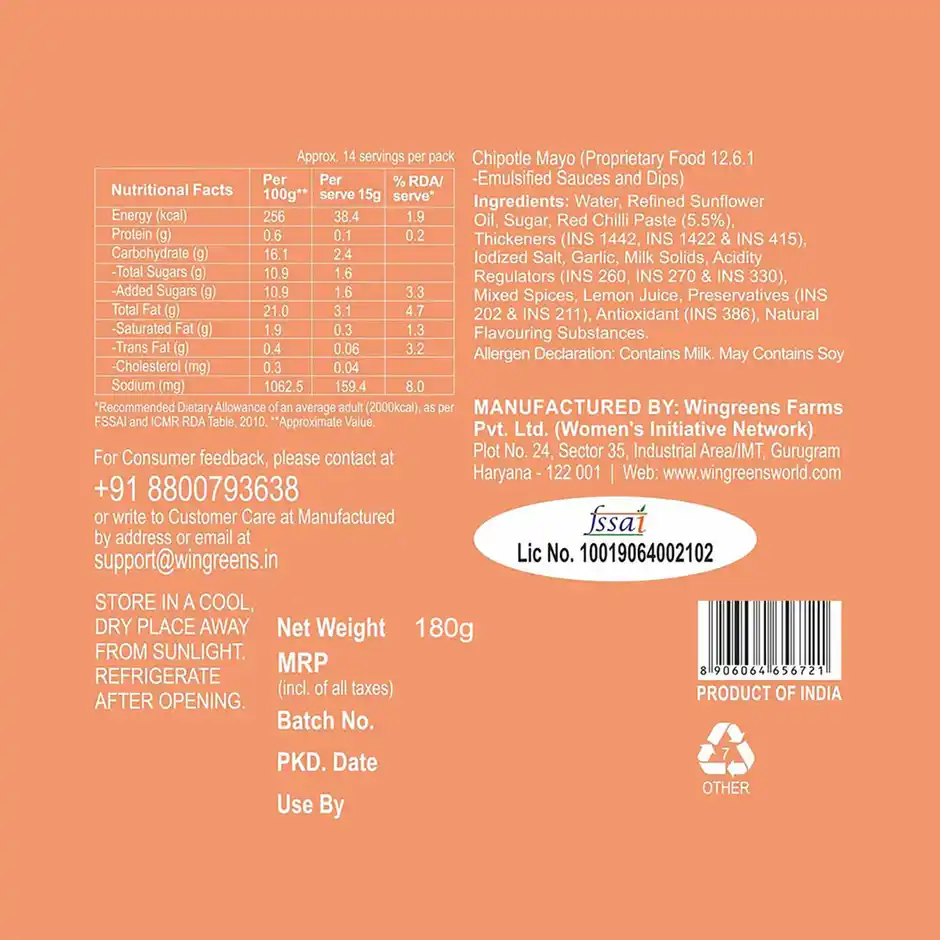 Wingreens Farms Chipotle Mayo Sauce And Spread (180 g)