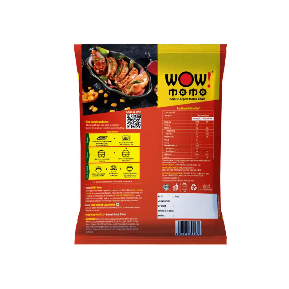 Wow! Corn & Cheese Chilli Momos | Cheesy & Spicy (10 pcs)